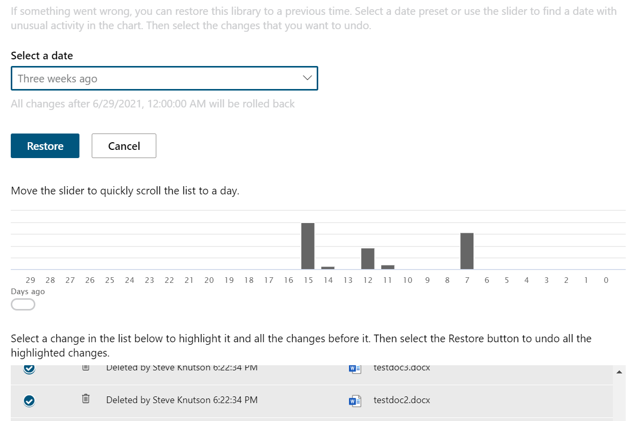 1. Great Post, Always great idea to get backup, as mentioned, you can only go back 14 days per site collection and OneDrive library rollback up to 31… if something happens and it is not caught in time, you are out of luck…
