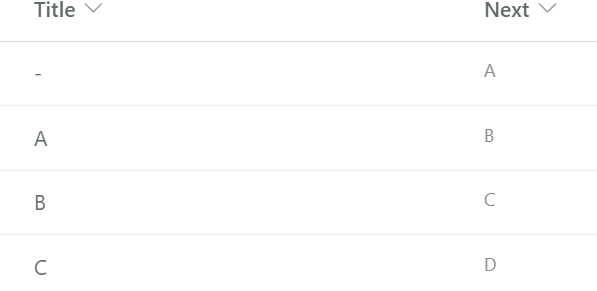 In SharePoint create a list with two columns. The Title column contains the current value and the second column the Next value. For example: