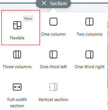To add a Flexible Section, edit your page and add a new section, then choose Flexible.