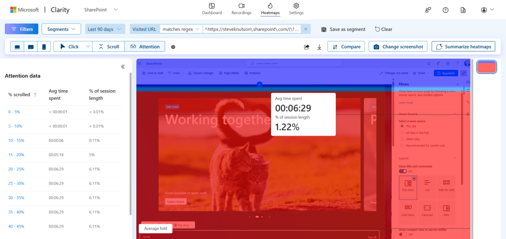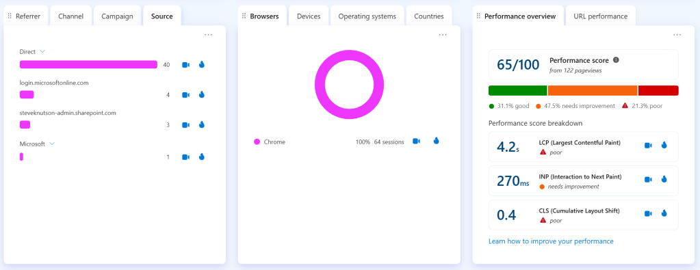 Clarity is a powerful tool for understanding user behaviour and can be used to get “clarity” on how people are using your Intranet. Clarity is a free services and gives far better insights into user engagement with your content that out of the box analytics.
