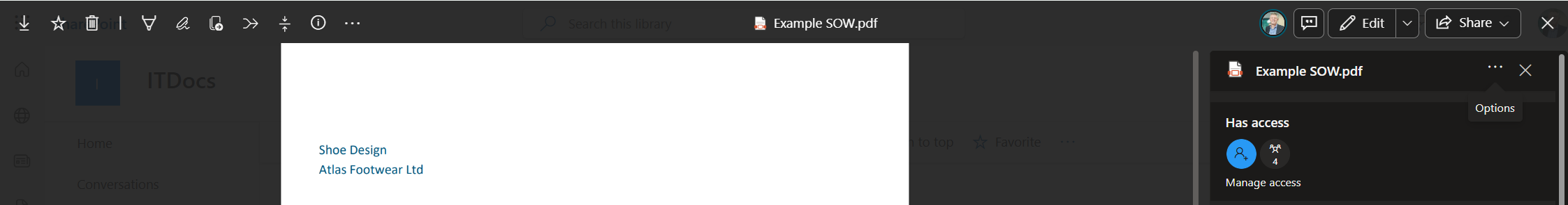 If you open a PDF in SharePoint, it defaults to opening in the SharePoint PDF preview. This is great if you want to use features like eSignatures, annotate the content, merge PDF files etc. You can right click a PDF file and open in the Browser or App but that’s not always obvious for end users.